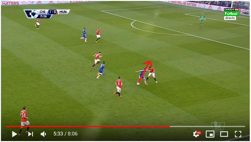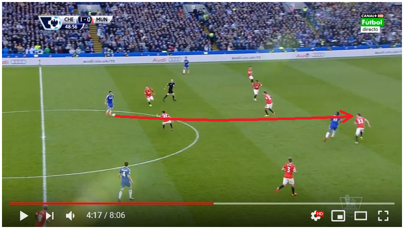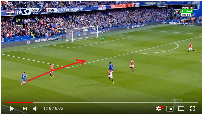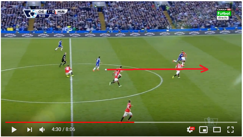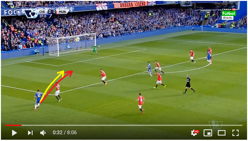 - Špatné řešení - Eden se krásně zbaví Rooneyho, udělá si čas a prostor v dobré pozici, zvedá hlavu, Drogba v náběhu s tím, že je mezi ním a golmanem velký prostor na to využít svoji rychlost proti obránci, ale Eden bohužel míč nedá. Možná by to šlo i po zemi, ale tady se nabízel hlavně Messiho bochánek.