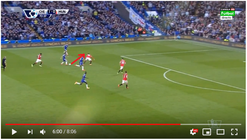 - Špatné řešení - Eden zase využívá své přednosti, aby si do ideální pozice navezl míč, má čas a prostor, zvedá hlavu, Drogba ještě v lepší pozici a náběhu než v předchozí situaci č. 3, Eden taky ve snažší pozici, protože by mohl dávat přihrávku po zemi do velké díry mezi obránce, ale ta bohužel nepřichází. Pro mě obrovská chyba.