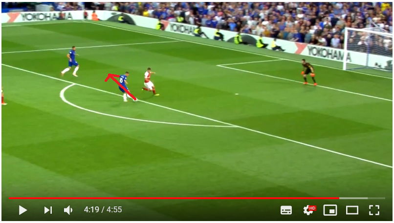 - Správné řešení - Skvělé řešení, které by takto zvládlo jen minimum hráčů, navázází Younga, krytí míče, přikopnutí Luizovi ideálně do prostoru a následný náběh do ideální pozice pro zakončení (na videu není vidět) mezi penaltu a velké vápno, které Luiz bohužel ignoroval a raději šel do neúspěšné kličky.
