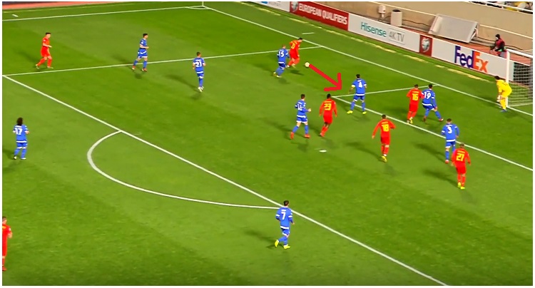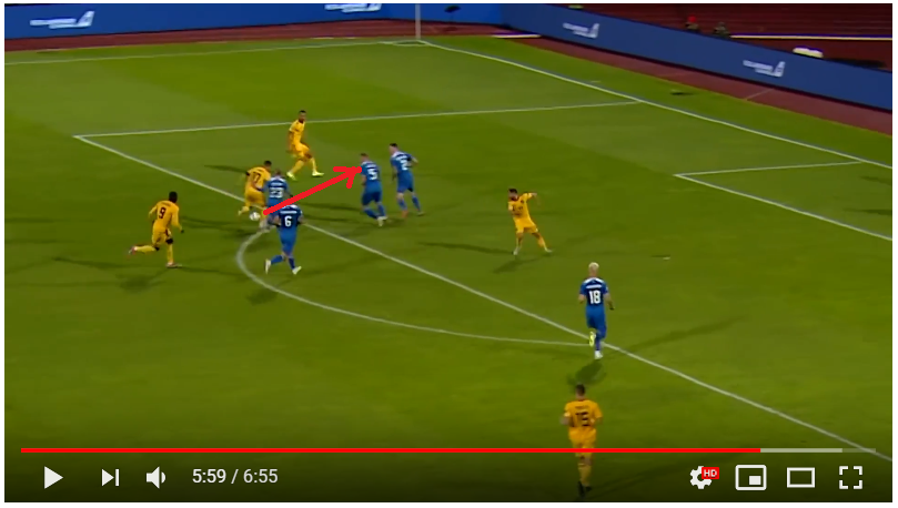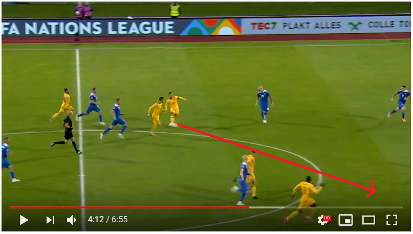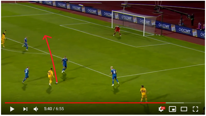 - Špatné řešení - Giroud v náběhu, stačilo si to správně načasovat (a připadně se uvolnit) a ve správnou chvíli mu poslat míč, po kterém by šel sám na bránu. Velká chyba. https://youtu.be/ccHUq8ZfmvQ?t=262
