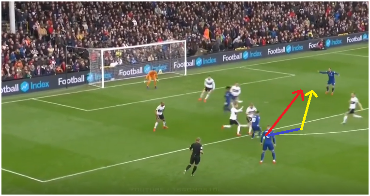 - Správné řešení - Od Edena super průnik i přihrávka, to se nedalo udělat líp, naopak ukázkově dementní Willian neumí zavřít zadní tyč a stojí schovaný za obráncema Fulhamu, když si má jít do volného prostoru pro gól.