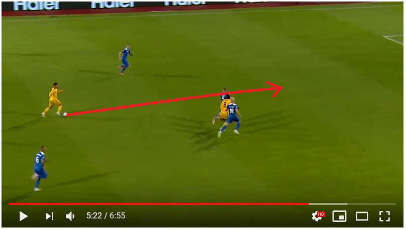 - Správné řešení - Skvěle, dostane míč v půlce útočné půlky, má čas a prostor, zvedne hlavu, spoluhráč v náběhu, přesná přihrávka, není co řešit.