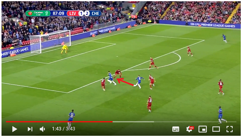 - Správné řešení - Dobrý balon do správného prostoru, přihrávka na penaltu by nejspíš nemohla projít, navíc vzhledem tomu, odkud a jak k míči od Kovačiće nabíhal by byla extreméně těžká, Morata a hlavně Willian každopádně spí.