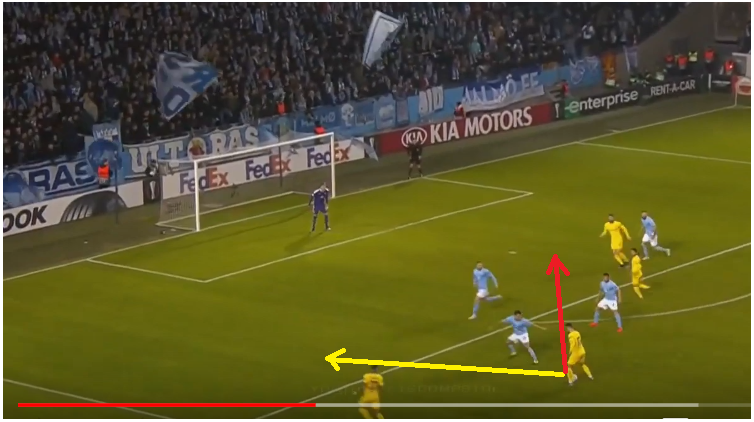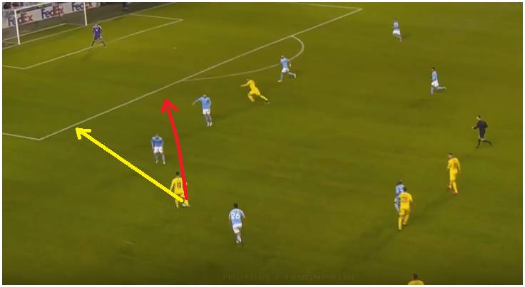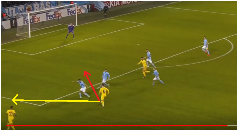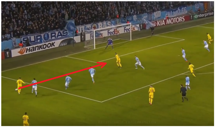- Špatné řešení - Mohl to dávat jako tady Pedro proti Malmö, samozřejmě jde ale o těžkoupřihrávku.