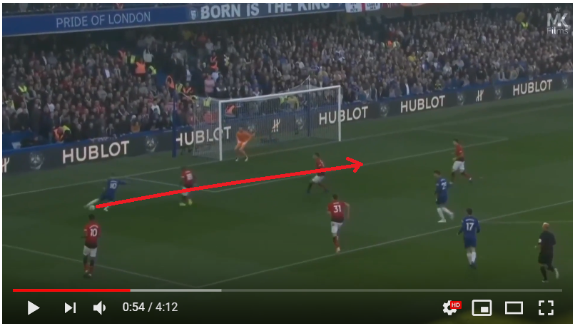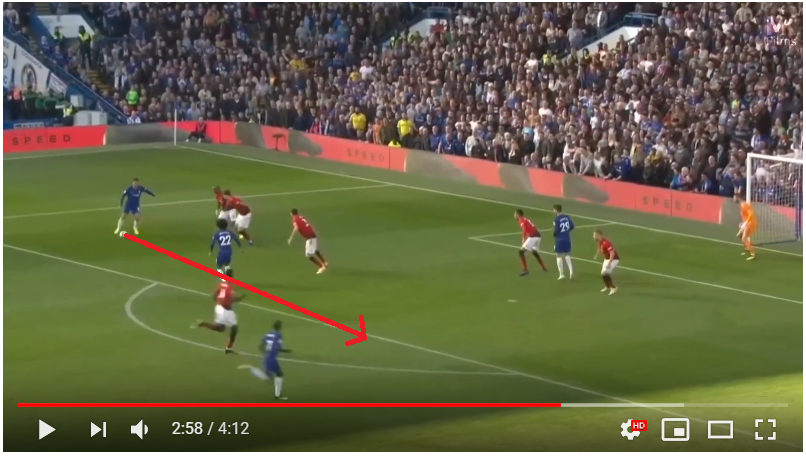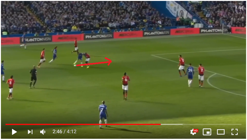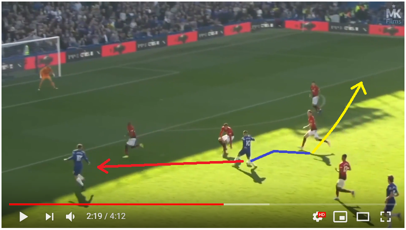 - Špatné řešení - Skvělá akce na jeden dotek s Giroudem, ideální navedení, Kanté ve skvělé pozici, ale Eden se to rozhodl vzít na sebe jako loni tady proti stejnému soupeři, což je škoda, na to měl v zápase prostor ve vhodnějších situacích, než je tato, kde by se spoluhráč ocitl ve stoprocentní tutovce a přihrávka na něj by byla tak snadná. Velká chyba, navíc se stavu 2:1 pro United.