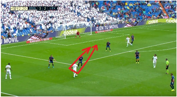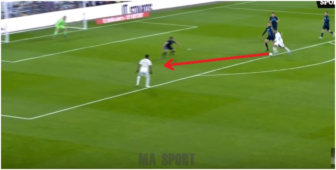 - Špatné řešení - Kdyby to přihrál Mendymu, ten mohl dávat finálku na Benzemu, který by byl potenciálně v ideálním posstavení sám před golmanem. Velká chyba od Edena.